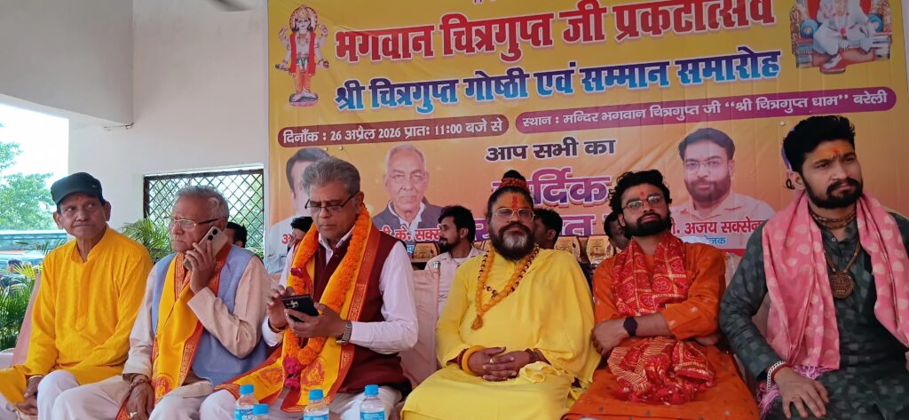 फतेहगंज पश्चिमी । हाइवे पर मौजूद चित्रगुप्त धाम में रविवार को भगवान श्री चित्रगुप्त का प्रकटोत्सव श्रद्धा एवं भक्ति भाव के साथ धूमधाम से मनाया गया। कार्यक्रम में बड़ी संख्या में श्रद्धालु शामिल हुए।