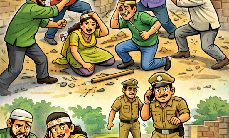 गांव धनतिया में पुराने जमीनी विवाद को लेकर एक ही समुदाय के दो पक्षों में चले लाठी डंडे